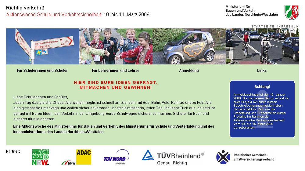 Aktions-Website Richtig verkehrt! Aktionswoche Schule und Verkehrssicherheit des