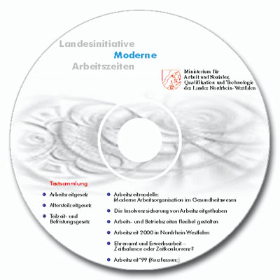 Moderne Arbeitszeiten in NRW. Praxisbeispiele, CD-ROM des Zeitbüro NRW (Unsere Leistungen: CD-ROM-Cover-Design, CD-ROM-Label-Design)