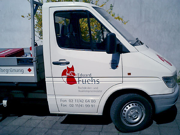 Signet ("Logo") der Fa. Eduard Fuchs, Firmenfahrzeug-Lackierung, Abbildungen der Baugerüst-Transparente, Berufsbekleidung und Geschäftsdrucksachen folgen in Kürze (Unsere Leistungen: Beratung, Konzept, Design, Reinzeichnung)