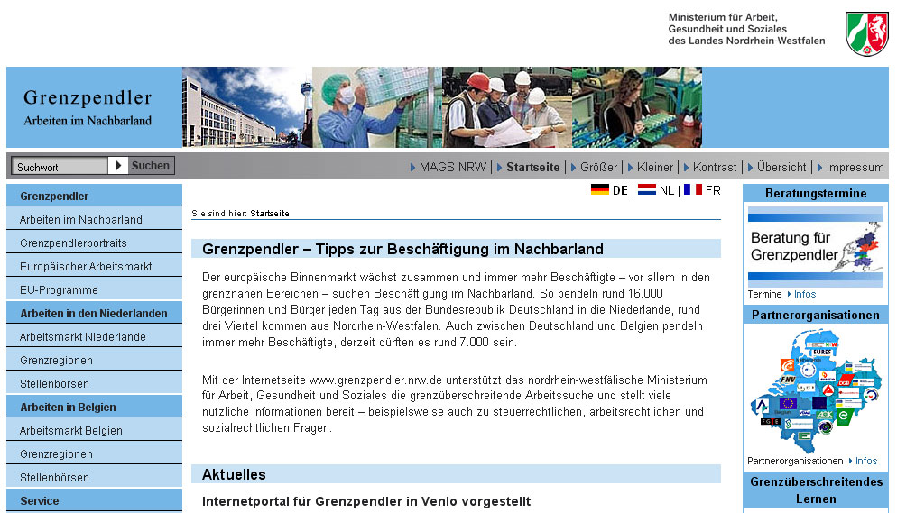 Kurzreportagen zur Portraitierung erfolgreicher Grenzpendler (Good Practice) für die Website Grenzpendler NRW des Ministeriums für Arbeit, Gesundheit und Soziales NRW (Unsere Leistungen im Auftrag der Webworker GmbH: Interviews, Reportagetexte)