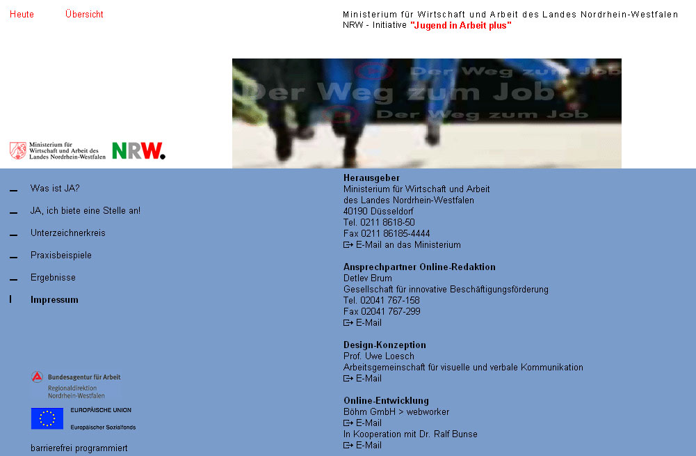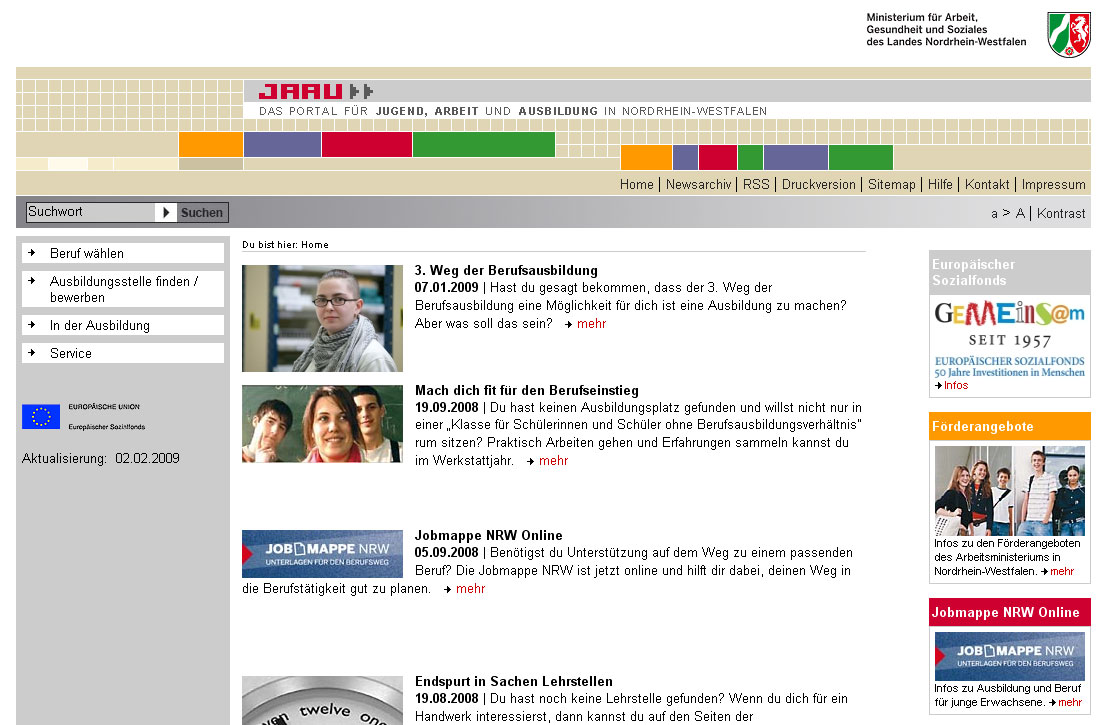 Serviceorientierte Website (ca. 300 Seiten) mit Portalcharakter und Startseite in Form eines Online-Journals der "Initiative Moderne Arbeitszeiten" des Ministeriums für Arbeit, Gesundheit und Soziales des Landes Nordrhein-Westfalen